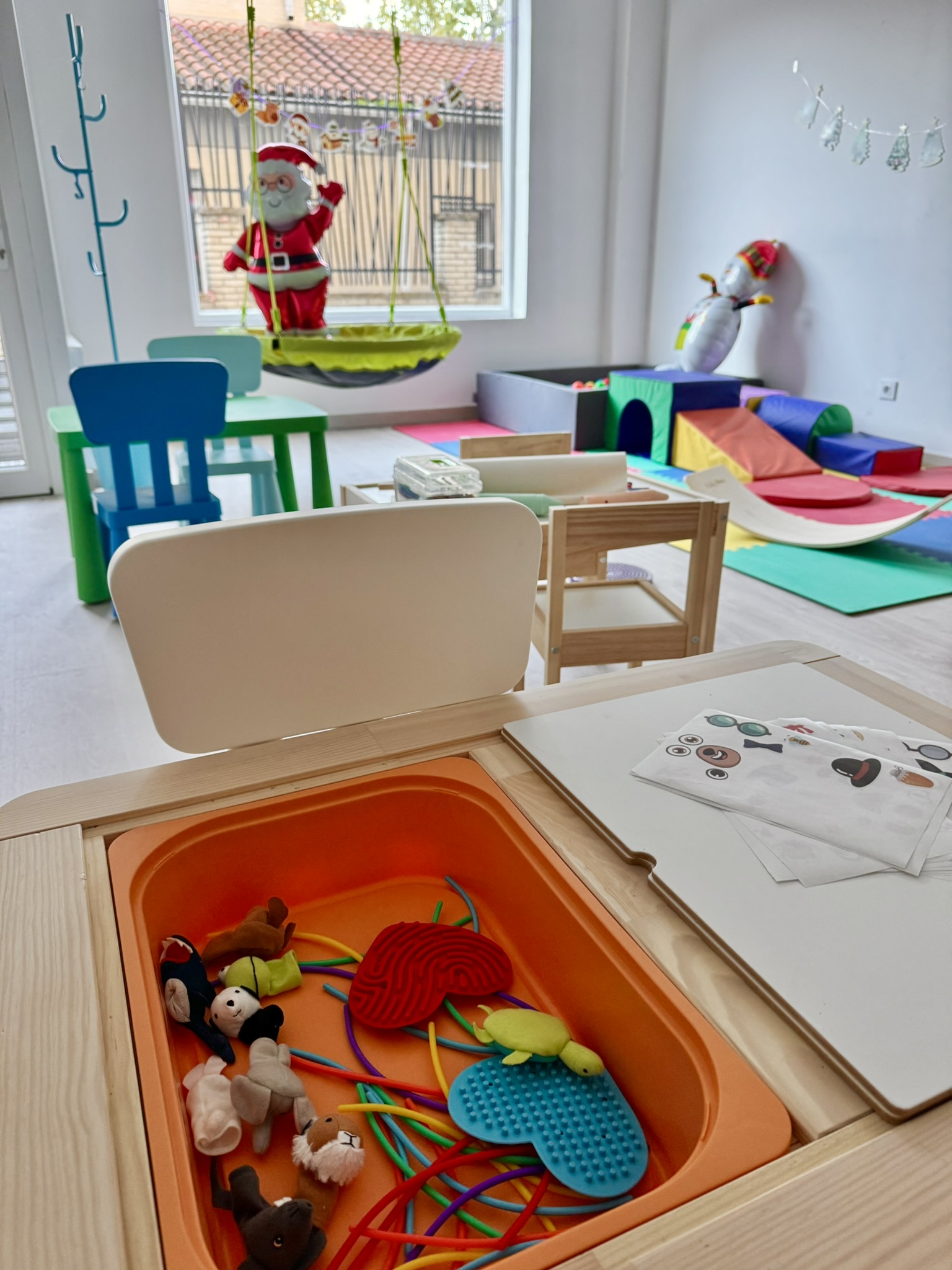 • Juegos sensoriales con texturas, sonidos y colores para estimular la percepción.
